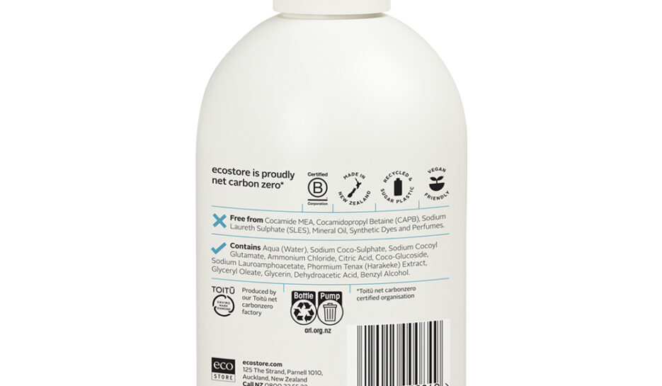 ecostore bottles are recyclable and made from a mix of recycled and renewable sugarcane plastic.nMade in NZ in our Toitū net carbonzero certified factory.