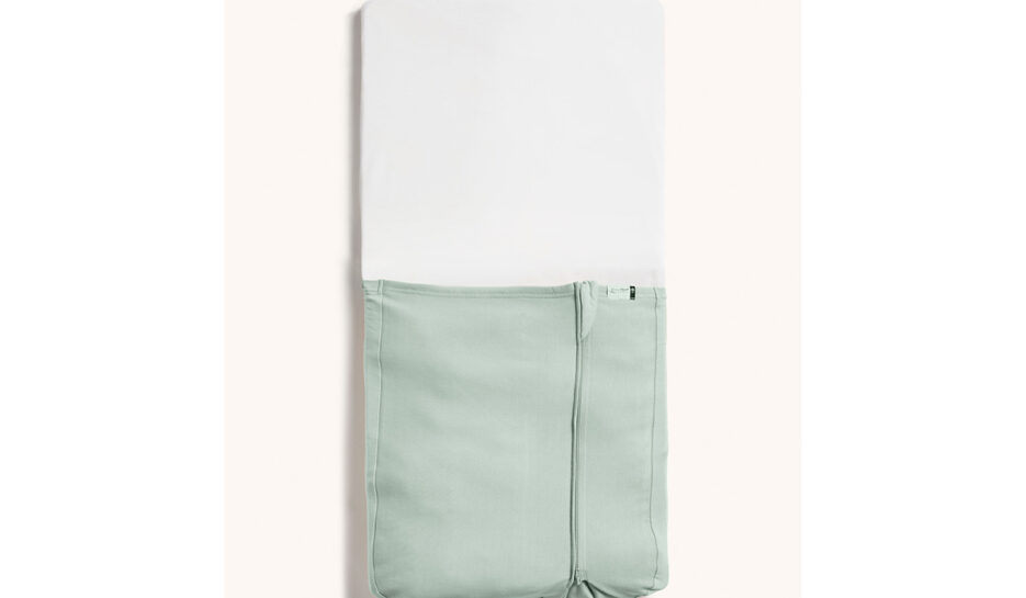 1. Slip the Baby Tuck Sheet over the end of your baby’s mattress. Choose the 0.2 TOG side up for a light feel and layer in warm rooms, or the 1.0 TOG side up for a firmer feel and warmer layer in moderate temperature rooms. Refer to our Bedding Temperature Guide (included in pack) for more information.