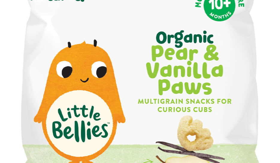 Little Bellies Organic Paws are crunchy, baked, paw-shaped snacks with the added goodness of sorghum. These tasty little paws are certified organic, a source of iron, and contain no added sugar or salt. Available in two flavours: Carrot & Cinnamon and Pear & Vanilla. Part of the Little Bellies ‘More to Explore’ puffed snack range for babies from 10+ months, this snack brings new adventures in taste, shape, and textures to help promote independence. Ideal for second-stage snacking.