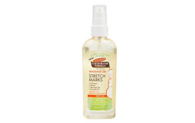 Palmer’s Cocoa Butter Formula Massage Oil for Stretch Marks is a lightweight yet nourishing oil that hydrates skin with Cocoa Butter, Moringa Oil and Baobab Oil. The addition of Collagen and Elastin help strengthen skin structure to improve elasticity and resistance to stretch marks. Lecithin helps soothe dry, itchy skin associated with pregnancy.