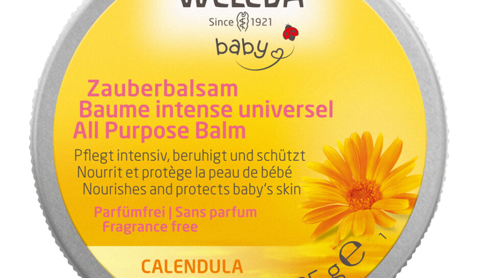 Weleda Calendula All Purpose Balm is an on-the-go balm that protects baby’s skin against drying out in cold, windy, wet and harsh weather. It softens and intensely nourishes baby’s skin and soothes very dry skin patches, chapped skin on cheeks, chin and hands as well as dry lips. The Calendula All Purpose Balm helps to restore the skin’s own barrier function. The 100 % natural water-free formula contains waxes, organic plant oils, organic cacao butter and extracts of organic Calendula and Millet.